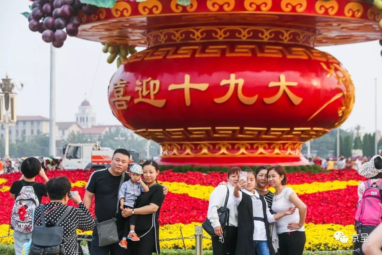 花坛另一面,还有喜迎十九大,国庆节之后不久,十九大就要召开。