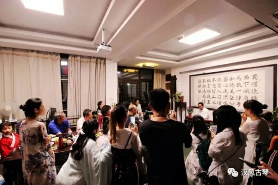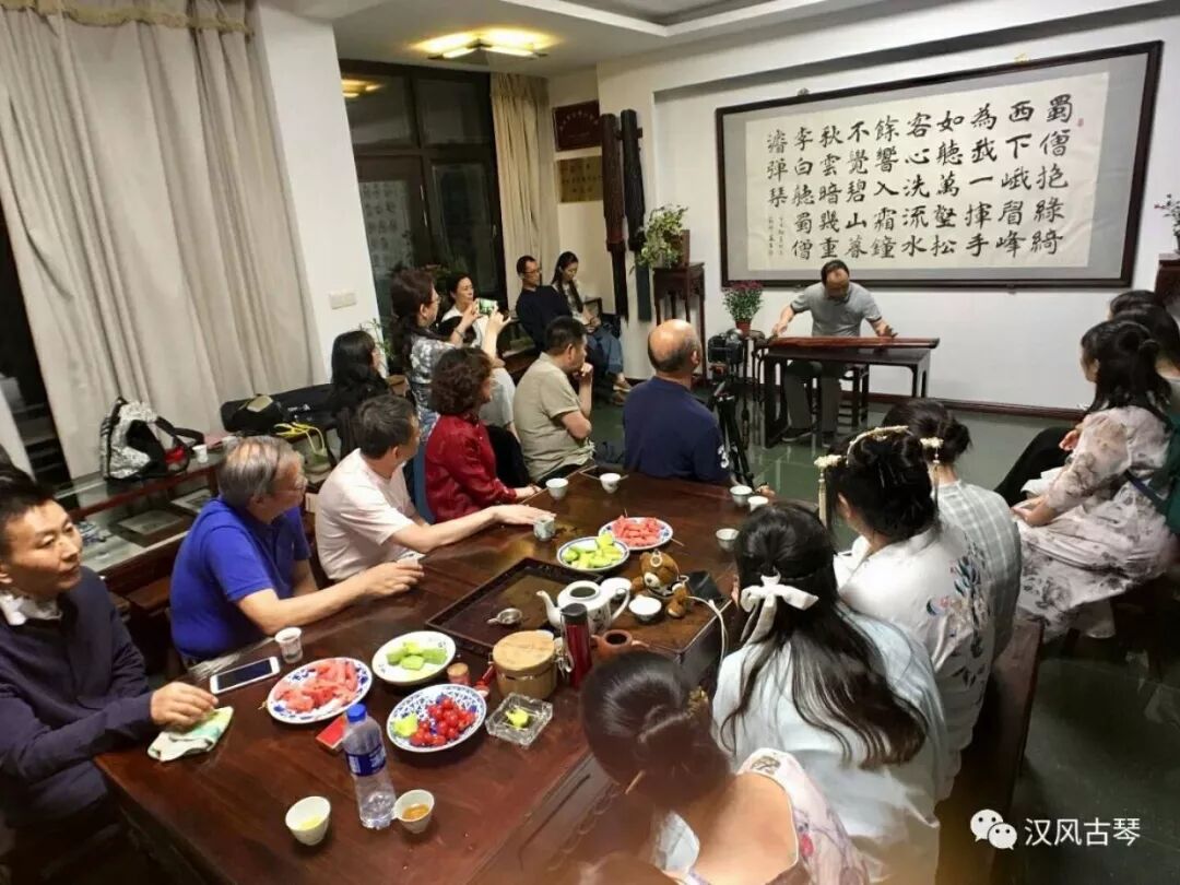 4月29日晚,镇江市国家梅庵派古琴艺术中心-----五柳堂灯火通明,梅庵派古琴艺术传承人、梦溪琴社社长刘善教老师及琴社社员,从扬州市来进行古琴艺术交流活动的广陵派传承人、南风琴社社长马维衡老师及南风琴社副社长朱红梅、副社长张为、理事李磊等,以及武汉恺元堂琴社学员等五十多人欢聚一堂。