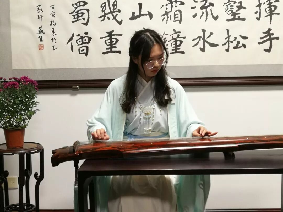 扬大古琴学社社长尚萌萌演奏《醉渔唱晚》;