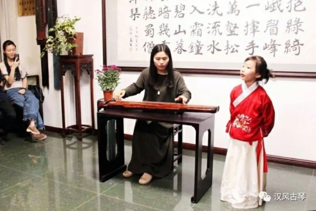 南风琴社副社长张为古琴伴奏、武汉小朋友杨斯琪吟诵《鹿鸣》;
