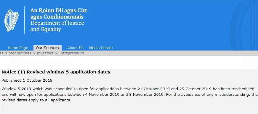 (图源:爱尔兰移民规划局) 爱尔兰移民归化局于10月1日发布重要通知:原定于2019年10月21日至10月25日开放的2019年第5个递交窗口已改期,变更为2019年11月4日至11月8日开放。 在英国宣布将脱欧的情况下,爱尔兰作为连接英国和欧洲的纽带,以及欧盟的英语母语国家,近年来移居热度持续高涨。 (图源:爱尔兰时报) 根据爱尔兰司法部数据显示,截至今年9月,爱尔兰投资居留计划申请人已超过1200组家庭,其中大多是来自中国的投资者。 1 爱尔兰有哪些优势,吸引了大批投资者? 优质教育: • 爱尔兰教育系统排名世界第七 • 爱尔兰所有大学都排名世界前列 • 欧盟国家、美国和英国的知名企业青睐爱尔兰毕业生 • 子女免费就读公立小学和中学,大学的学费远低于英美 • 爱尔兰和英国互相承认中学学分 *资料来源:2017年IMD世界竞争力排名 就业优势: • Google, Facebook, IBM, Accenture, 辉瑞等超过1150家跨国企业将欧洲总部设在爱尔兰 • 大量优质、高薪的就业机会,如,Google在爱尔兰雇员人数超7,000人,Apple超6,000人 • 2018年,爱尔兰全职员工的平均年收入为47,596欧元 • 约78%的爱尔兰毕业生离校后九个月内就能找到工作 投资与经商: • 2014-2018连续五年经济增长率保持欧盟超高水平 • 2011-2017年度IBM 区域趋势报告称爱尔兰为外资直接投资量超大国 • 2017年度IMD世界竞争力年鉴评价爱尔兰为 国 • 2013年福布斯评价爱尔兰为世界优质经商国 • 国家综合知识、国家繁荣度和平等水平排名世界前列 • 企业所得税税率低至12.5% 移民政策宽松: • 先获批再投资 • 无语言要求 • 无管理经验要求 • 无移民监 • 6个月左右即可获批 护照含金量高: 爱尔兰护照的价值相当于英国护照+欧盟护照。 • 英国护照:根据爱尔兰与英国签署的共同区域协定CTA,爱尔兰公民前往英国无需申请签证,且在英国无需申请永居,进英国后可自动享有自由定居、工作、学习、享受社会福利甚至选举的权利 • 欧盟护照:爱尔兰是欧盟国家,持爱尔兰护照可以在欧盟成员国读书、工作 此外,爱尔兰移民局委托了安永对爱尔兰投资移民计划做独立审查。这次安永的独立审查结果,预计也将对2020年的IIP指南产生影响。一旦新指南发布,2020年递交的所有新申请都必须遵守新指南。 此前,2019年的IIP指南已经反映出了申请要求的缩紧趋势,2020年政策预期更加紧缩。 今年爱尔兰递案窗口期仅剩一次,距离“末班车”发车不足一个月!而准备申请文件还需 时间。因此,我们建议,对爱尔兰投资移民有意向的申请人应把握机会,早做决定,才能顺利赶上窗口期递交申请,锁定现行的宽松政策! 关于家叶海外集团 家叶海外集团创立于2004年,总部位于广州珠江新城,拥有自购物业CBD写字楼。是中国华南地区具有澳新美加多国投资、移民、签证服务的综合性海外服务机构,同时,还帮助众多国内高净值人士成功开启了海外生活。